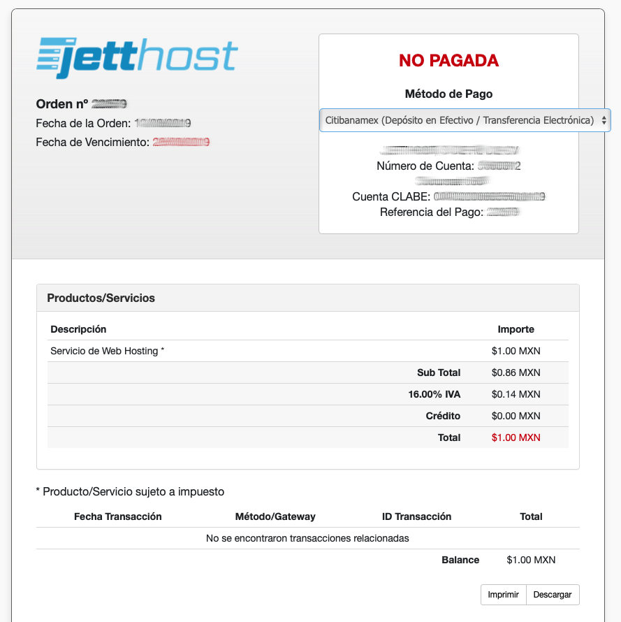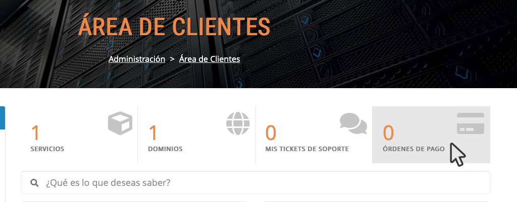 Al momento de generar una orden de compra o de renovación con nosotros, enviamos los datos a la cuenta de correo que registró al momento de contratar su servicio. De forma adicional puede encontrar los datos de pago desde su área de cliente siguiendo los pasos a continuación: