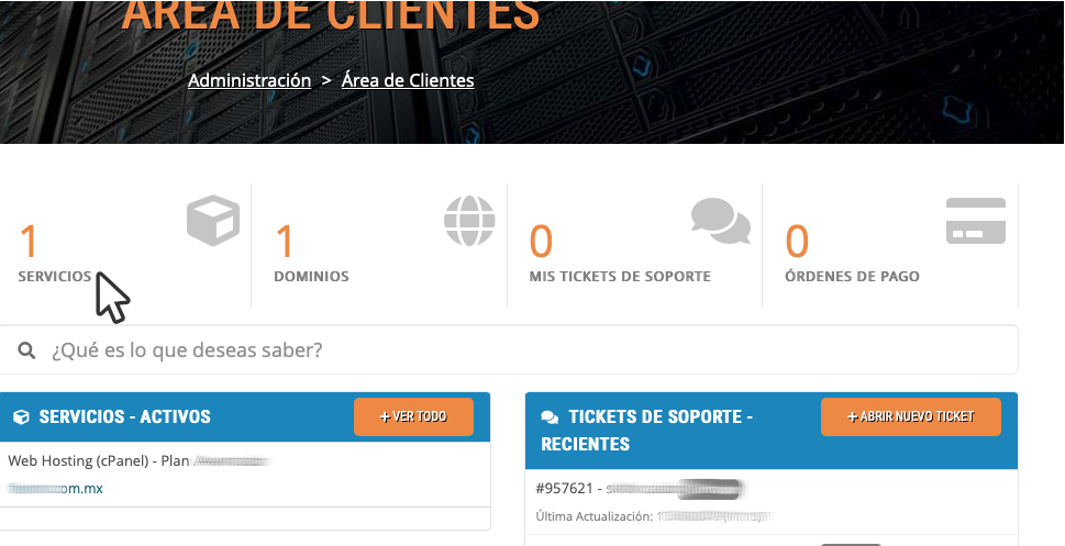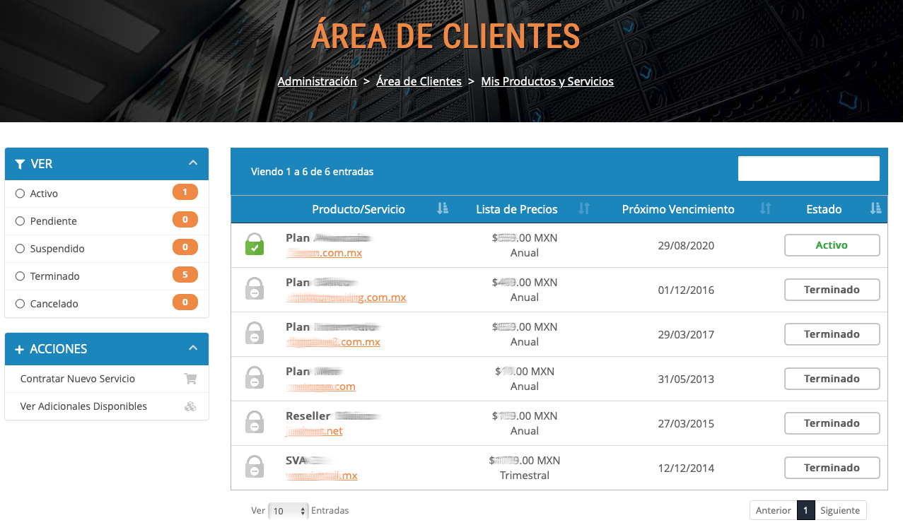 Desde su área de cliente puede validar los servicios que se encuentran vigentes y los que han expirado, así como las fechas de vencimiento de cada uno de ellos.