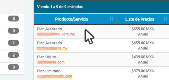 Se va a mostrar un listado con sus planes, debe hacer clic sobre el servicio que desea modificar.