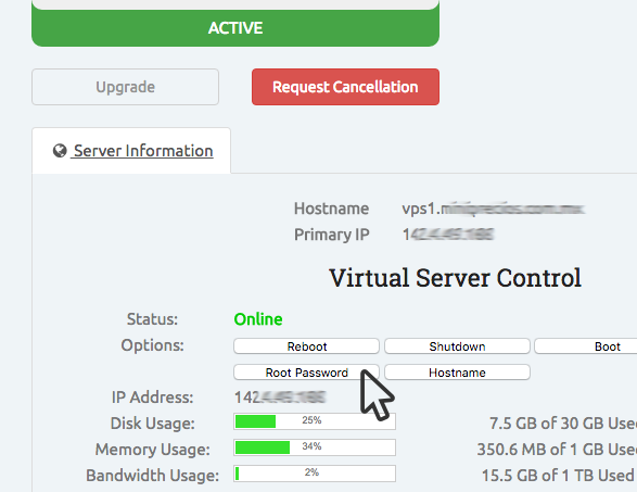Para cambiar la contraseña root de su servicio Cloud VPS, debe seguir los pasos mostrados a continuación: