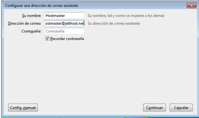Para consultar y administrar su correo electrónico desde Thunderbird previamente instalado, debe seguir los pasos mostrados a continuación: