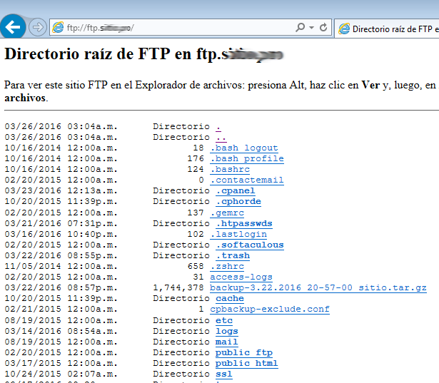 Abra el navegador web de su preferencia e introduzca en la barra de direcciones la dirección FTP de su servidor, por ejemplo ftp.sudominio