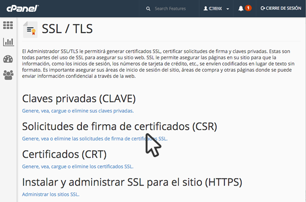 Para poder configurar su Certificado SSL, primero debe generar la solicitud de firmado CSR dentro de su cPanel, estos pasos le ayudarán a generarlo.