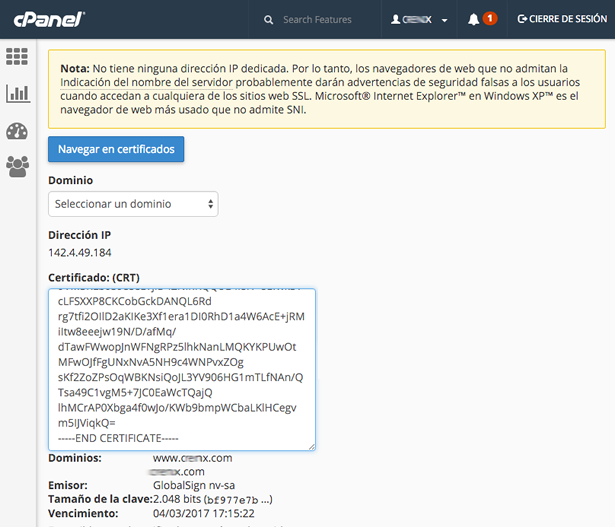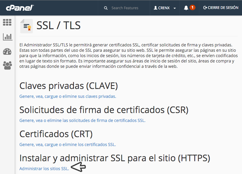 Este tutorial asume que se encuentra dentro de su cPanel y que ya cuenta con su Certificado SSL (CRT).