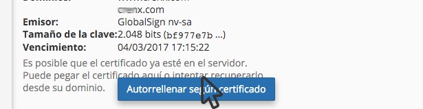 Al hacerlo se va a mostrar un botón Autorellenar según certificado y debe hacer clic sobre el.